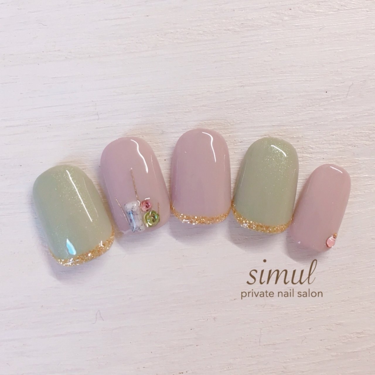 色数が多くても派手にならない 組み合わせで楽しむ 3色ネイル で指先