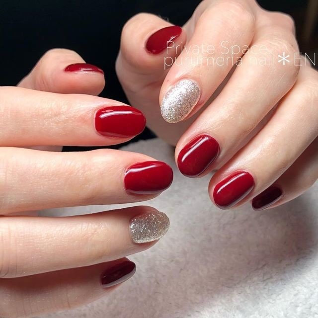 ラメ ワンカラー レッド ボルドー シルバー Purumeria Nail Enの