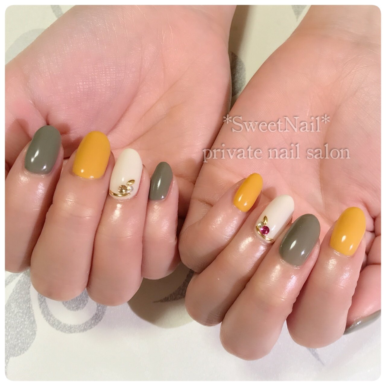 3色ネイル 学園前 ネイルサロン Ajin Nail Care