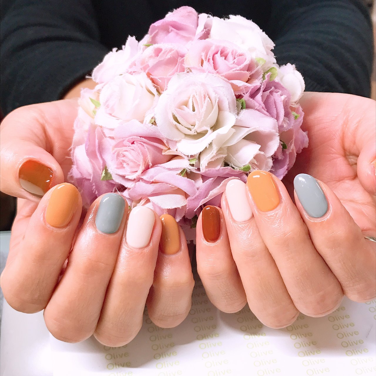 色数が多くても派手にならない 組み合わせで楽しむ 3色ネイル で指先