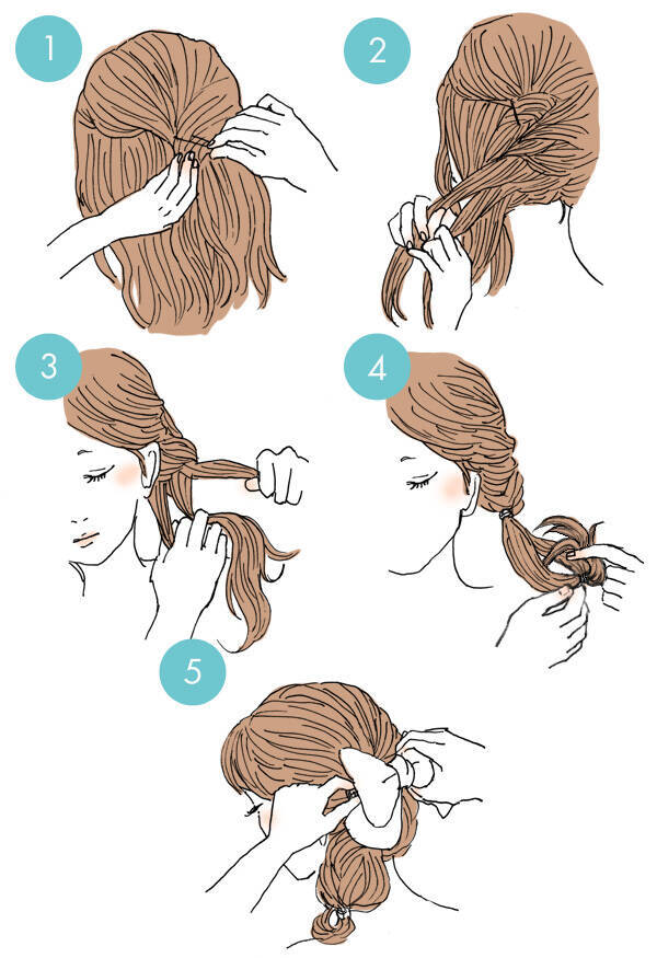 パーティーに使える 三つ編みで作る華やかお団子アップ イラスト付き