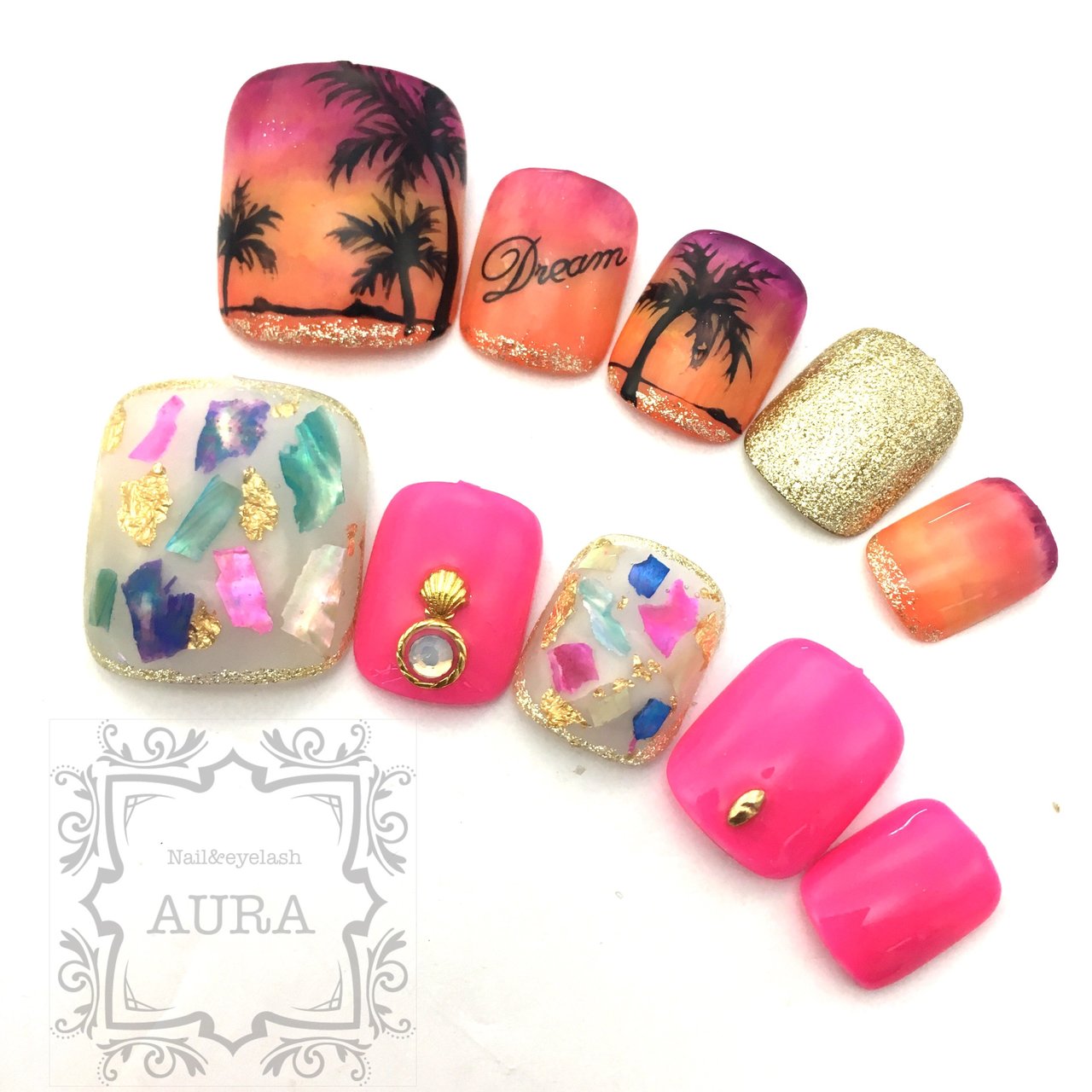 夏 旅行 海 リゾート フット Meesan Aura のネイルデザイン No