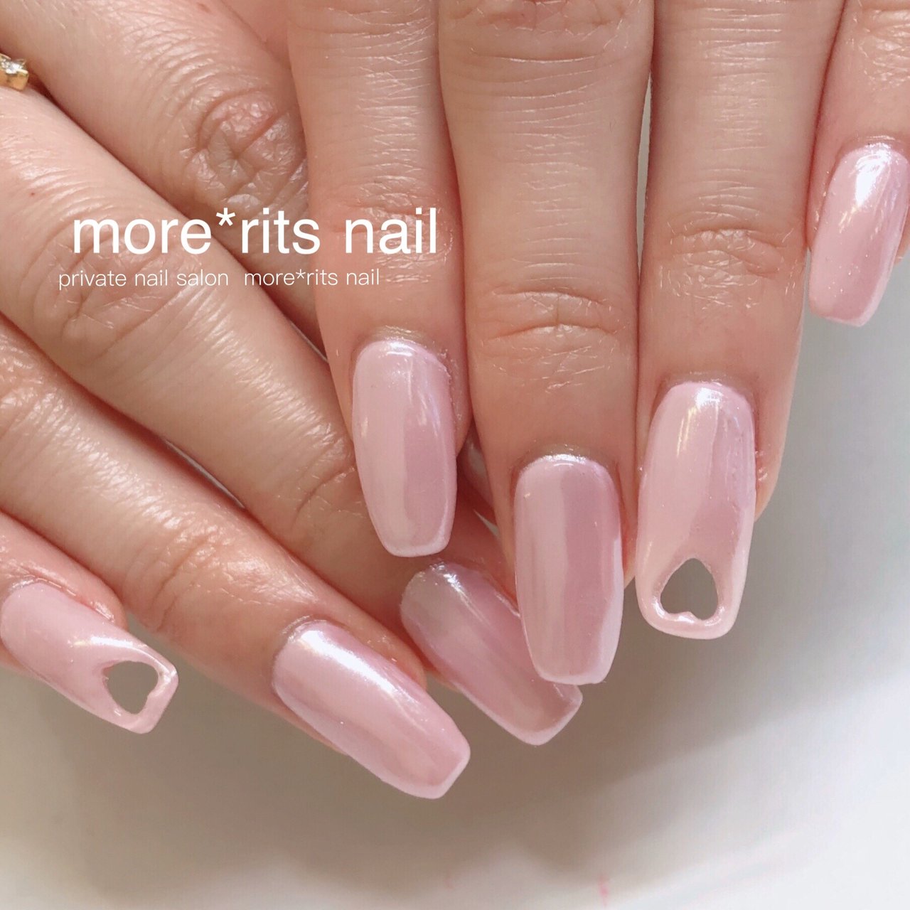 シアーピンクのマーブルネイル くり抜きハートネイル オールシーズン