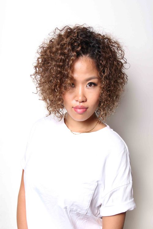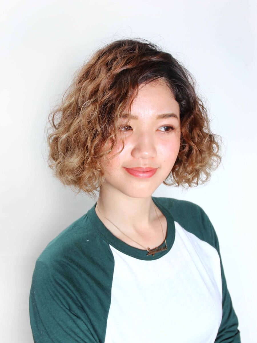 ボブヘアのゆるふわスパイラルパーマ Aライン クルクルパーマ 外国