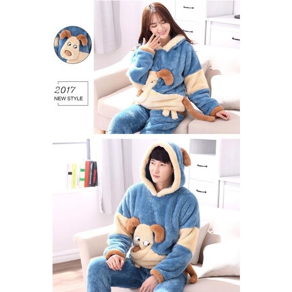 パジャマ 犬柄 ペアパジャマ ルームウェア もこもこ 可愛い 上下セット