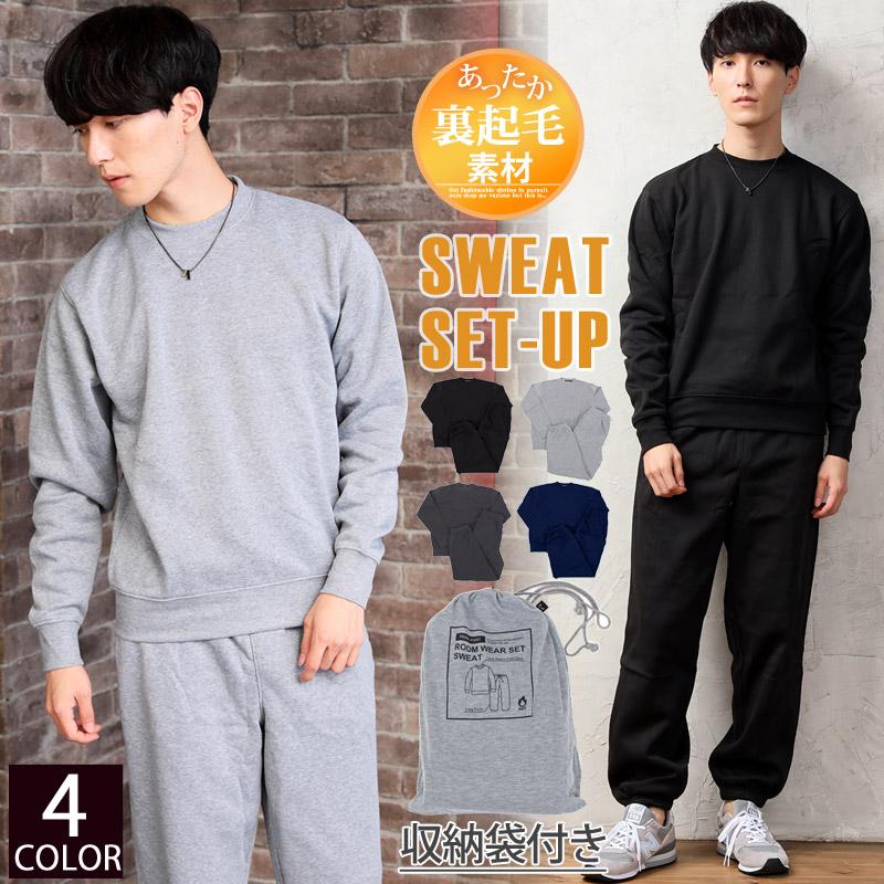 スウェットスーツ メンズ セットアップ 裏起毛 無地 クルーネック ルームウェアー 部屋着 寝巻き パジャマ トレーナー