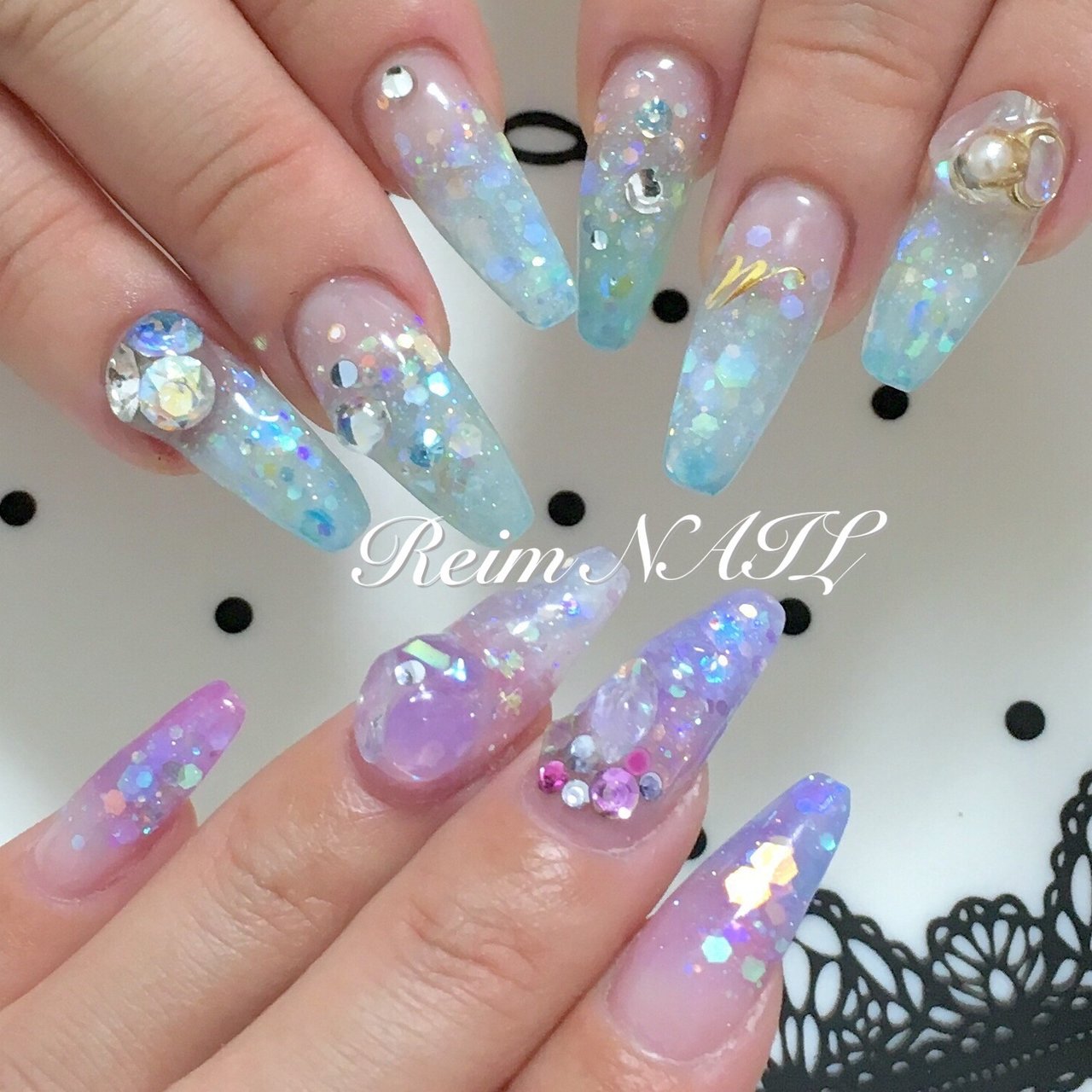夏 ハンド グラデーション ラメ ロング Kiuinailのネイルデザイン No