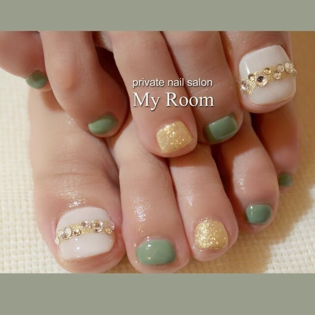 夏 フット ミディアム グリーン ジェル My Roomのネイルデザイン No 1031300 ネイルブック