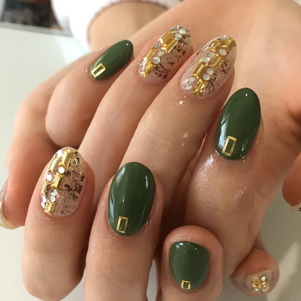 Acori Nail Instagram 久しぶりにカーキ ゴールドでシックに Gr703 Gd027 Gd083 Sp012 ネイルのアイデア ネイル シンプル マニキュア マニキュア