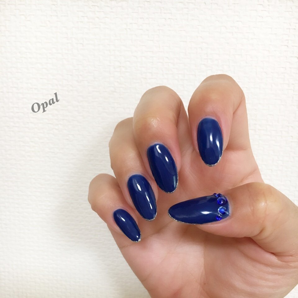 健康なお爪に映える濃色ブルー オーロラホワイトのワンカラーネイル