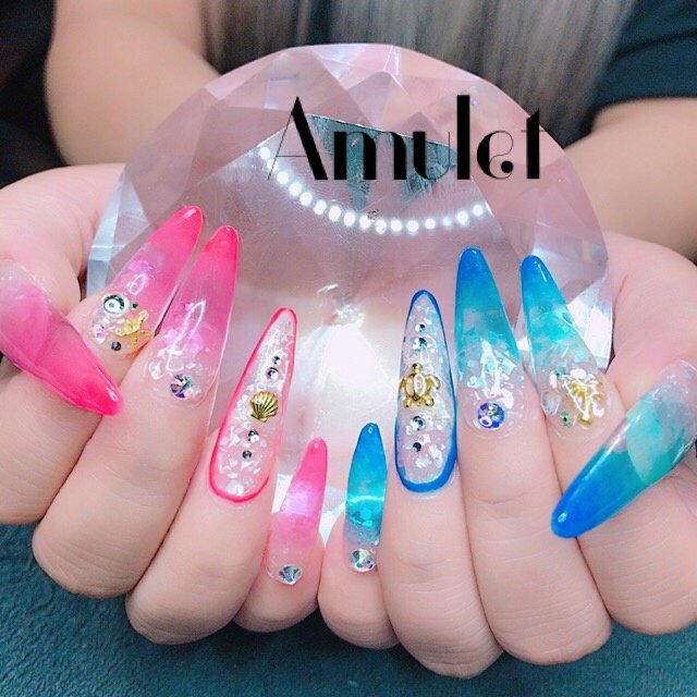 夏 海 浴衣 ハンド グラデーション Amuletokayamaのネイルデザイン