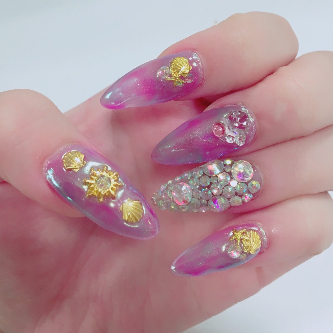 夏 マーブル ロング ピンク パープル ちゃんかな のネイル