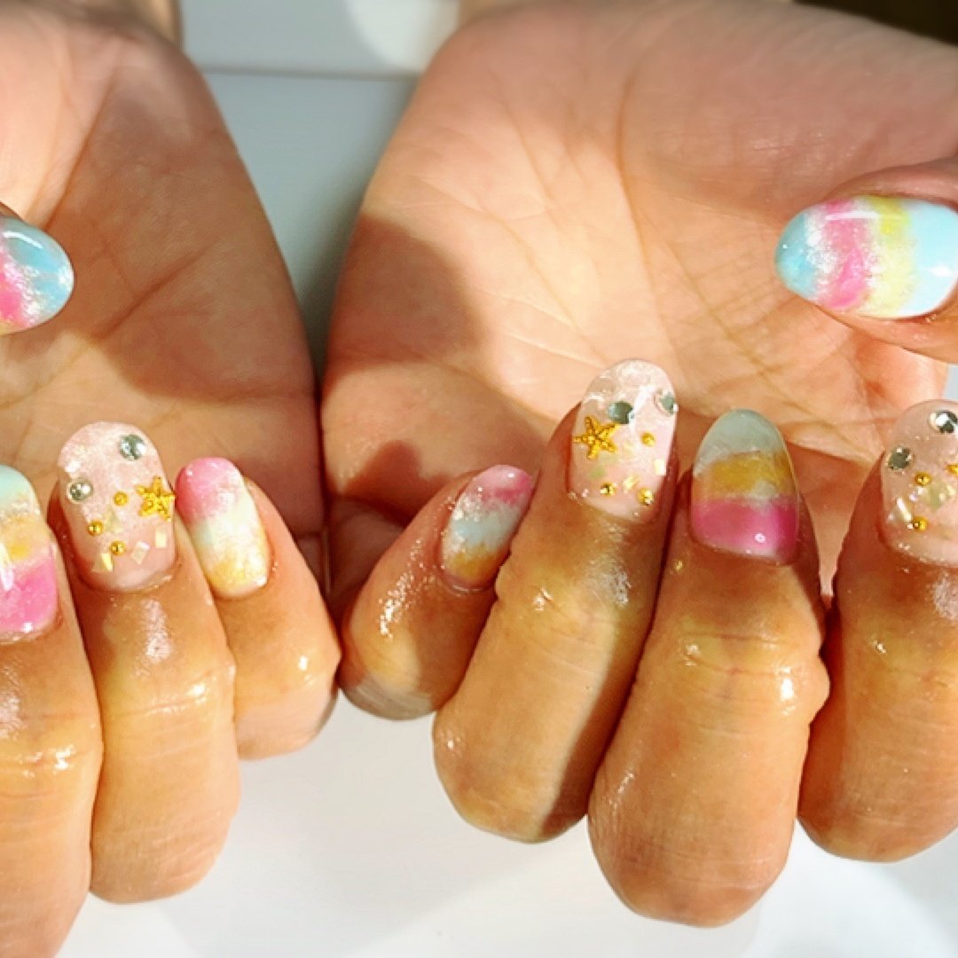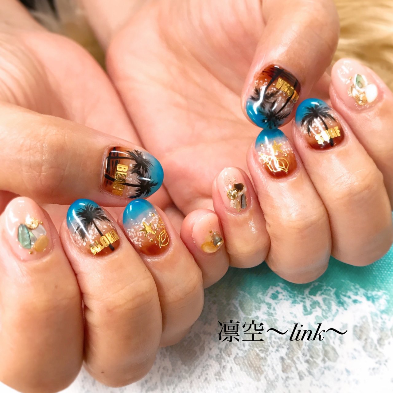夏 海 リゾート ハンド グラデーション Haruka Linkのネイルデザイン