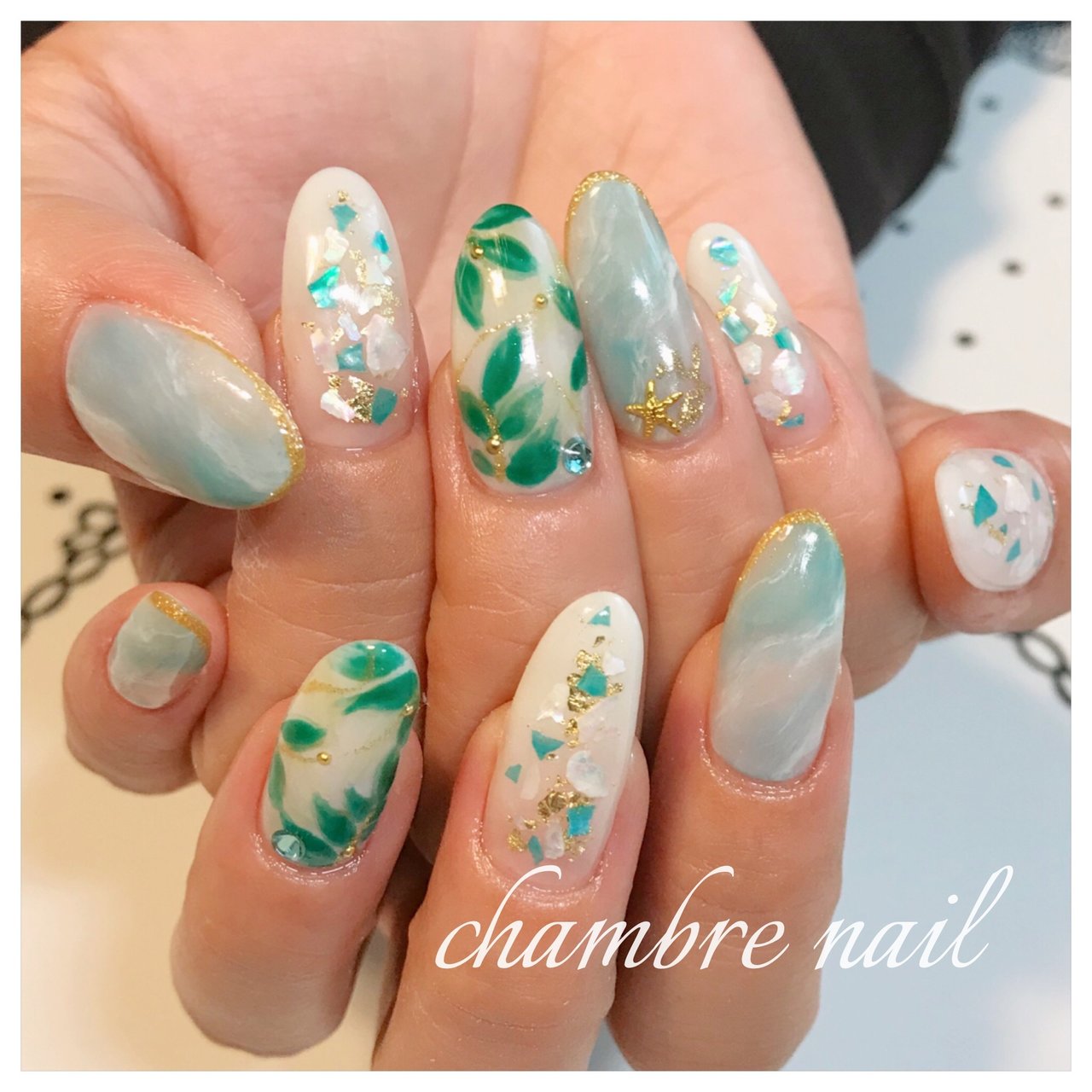 夏 海 リゾート 女子会 ハンド Chambre Nailのネイルデザイン No