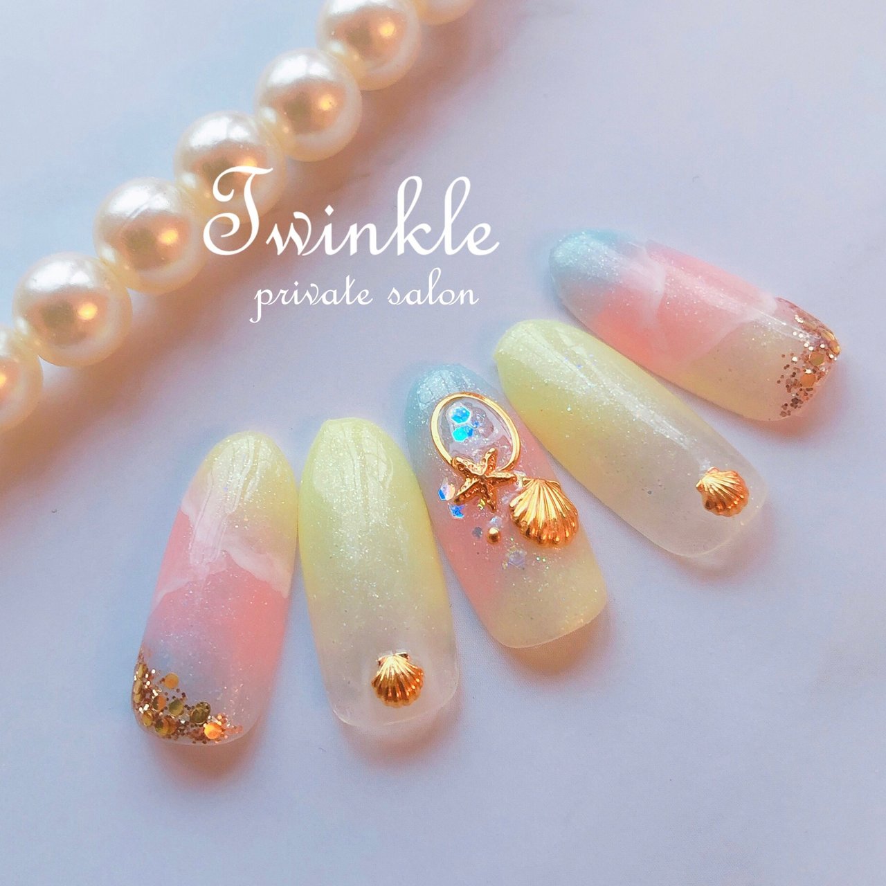 夏 海 リゾート デート ハンド Nail Salon Twinkleのネイルデザイン