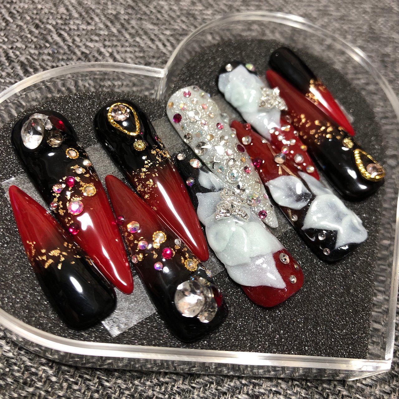 成人式ネイルチップ 赤 黒グラデーション salonrose