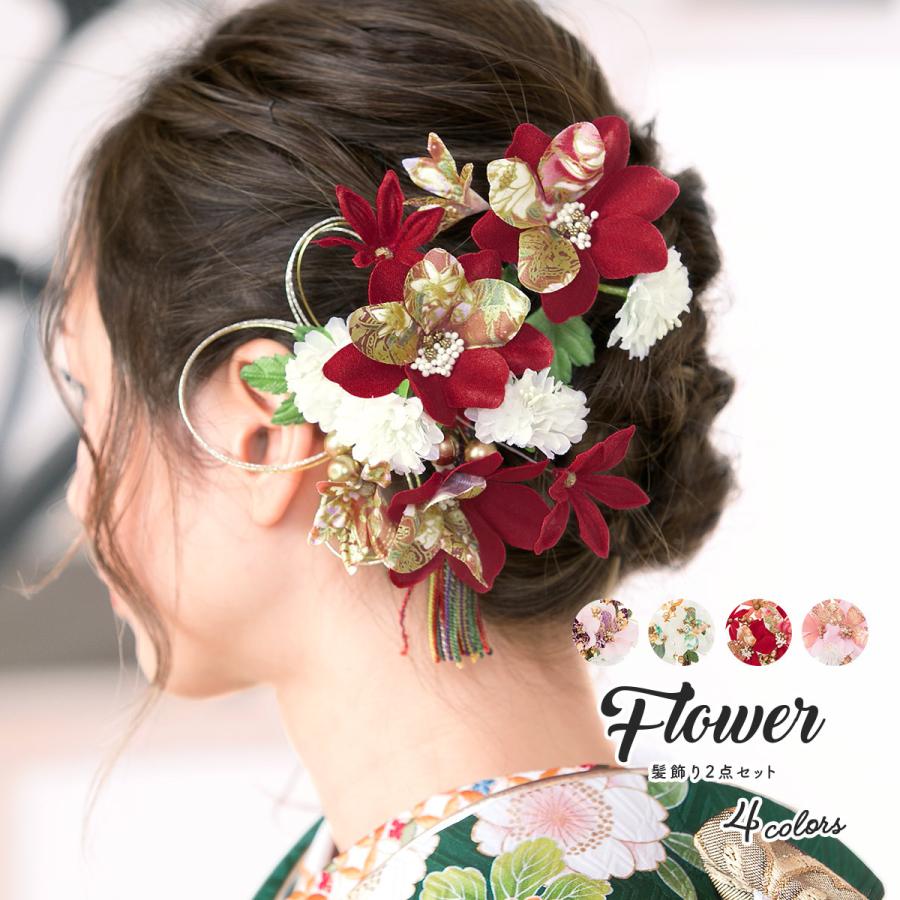 楽天市場 髪飾り 成人式 2個セット 卒業式 振袖 浴衣 花 フラワー 赤