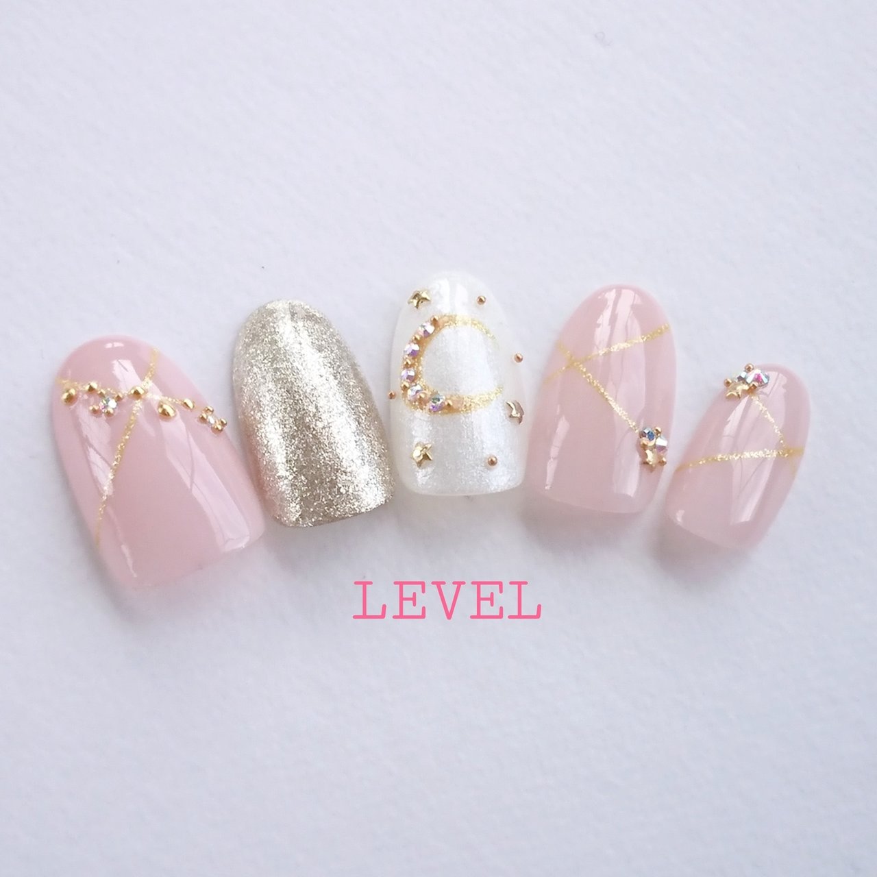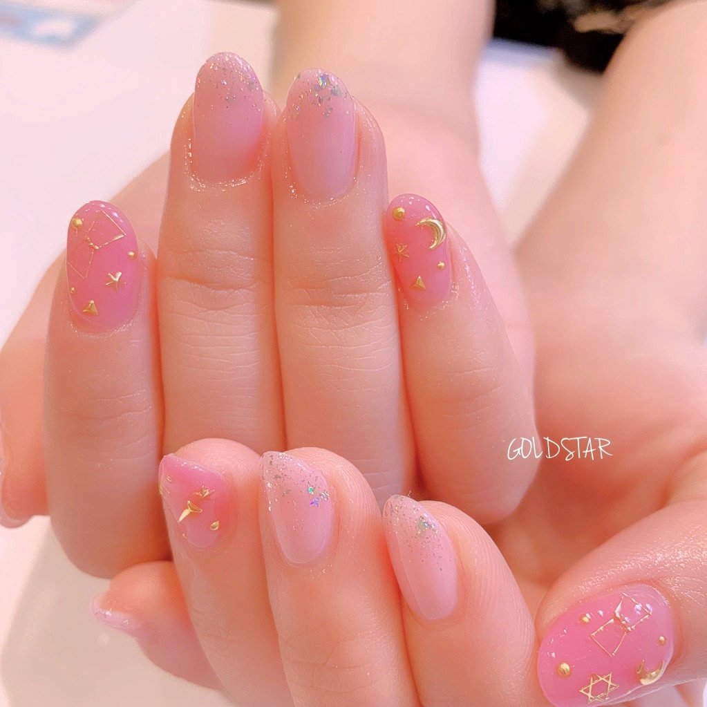 もうすぐ七夕ということで 星空を意識したピンク星座ネイル O