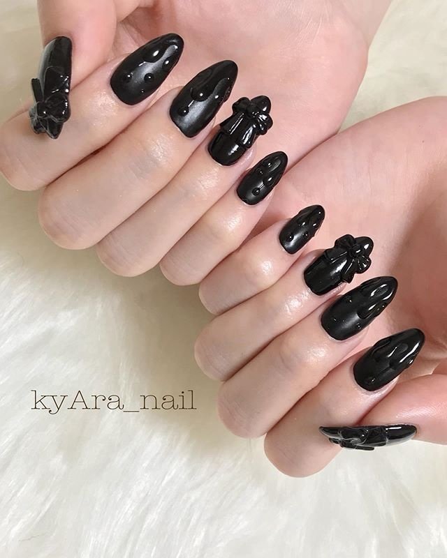 Black Nail Blacknail Gelnail Nail Cool Black Kirakira
