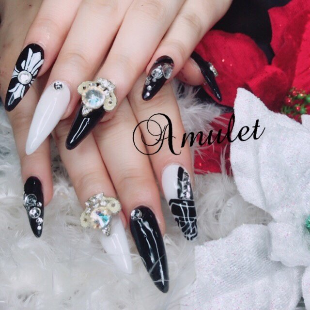 ビジュー スカルプチュア 黒ネイルのネイルデザイン ネイルブック