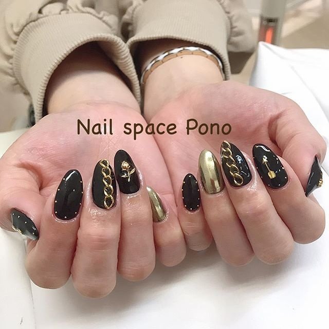 あの人 お洒落 ブラックネイルで 派手さをおさえたお洒落な指先に