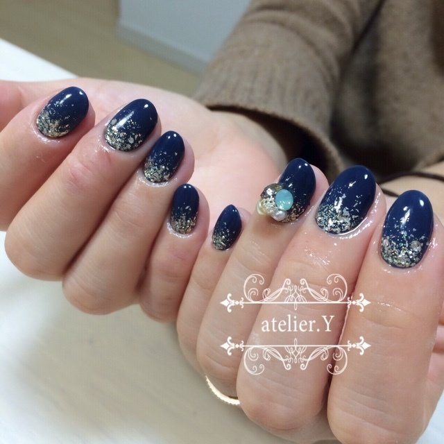 ハンド ネイビー シルバー ジェル お客様 Ne Arのネイルデザイン No