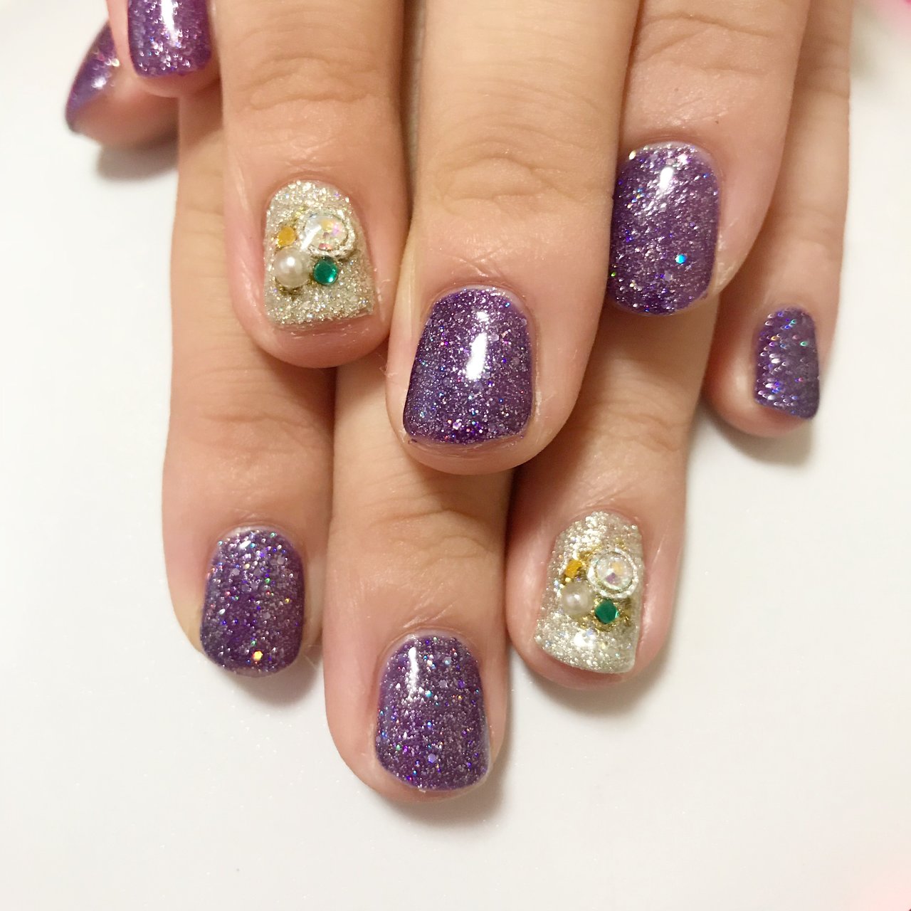 ラメ紫ネイル 竹原市 ネイルサロン ネイルレッスン ヒーリング