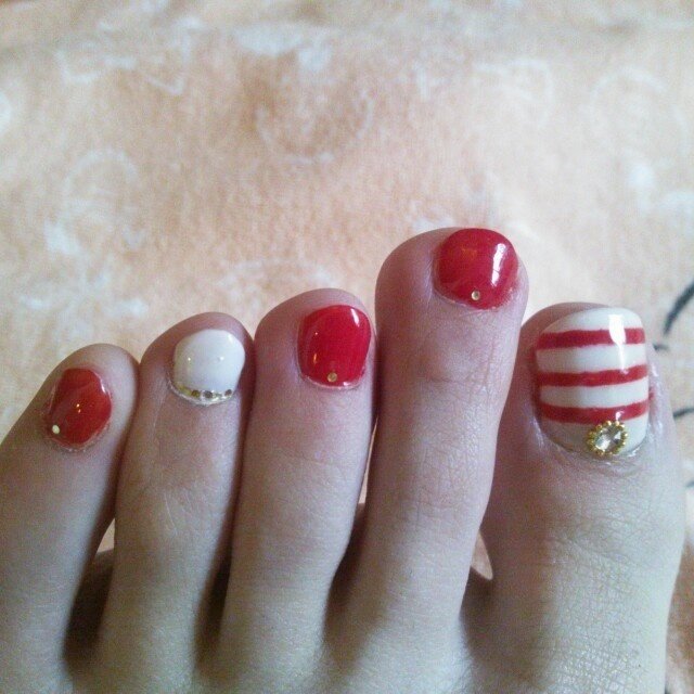 ネイル ネイル By Yukina 赤と白のエスニックフットジェルネイル