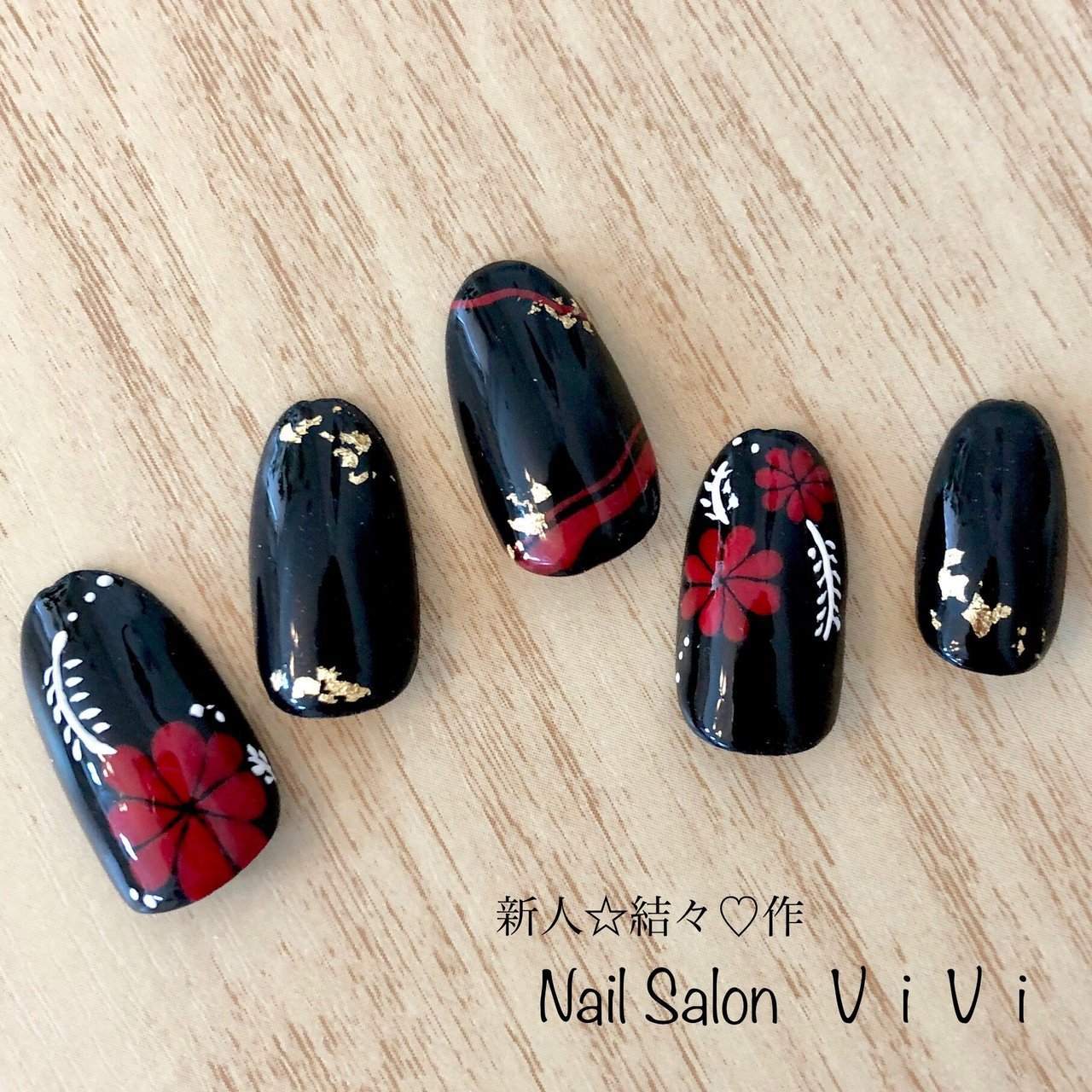 成人式 和風 着物 ネイルチップ 赤 黒 花 かっこいい 着物 マーブル グラデーション 豪華 ゴージャス ネイルチップ つけ爪 マジカルネイル 通販 Creema クリーマ ハンドメイド 手作り クラフト作品の販売サイト