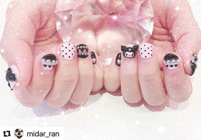 ネイルチップ 量産型 秋 ネイル ピンク 黒 ゆめかわ くま オーダー