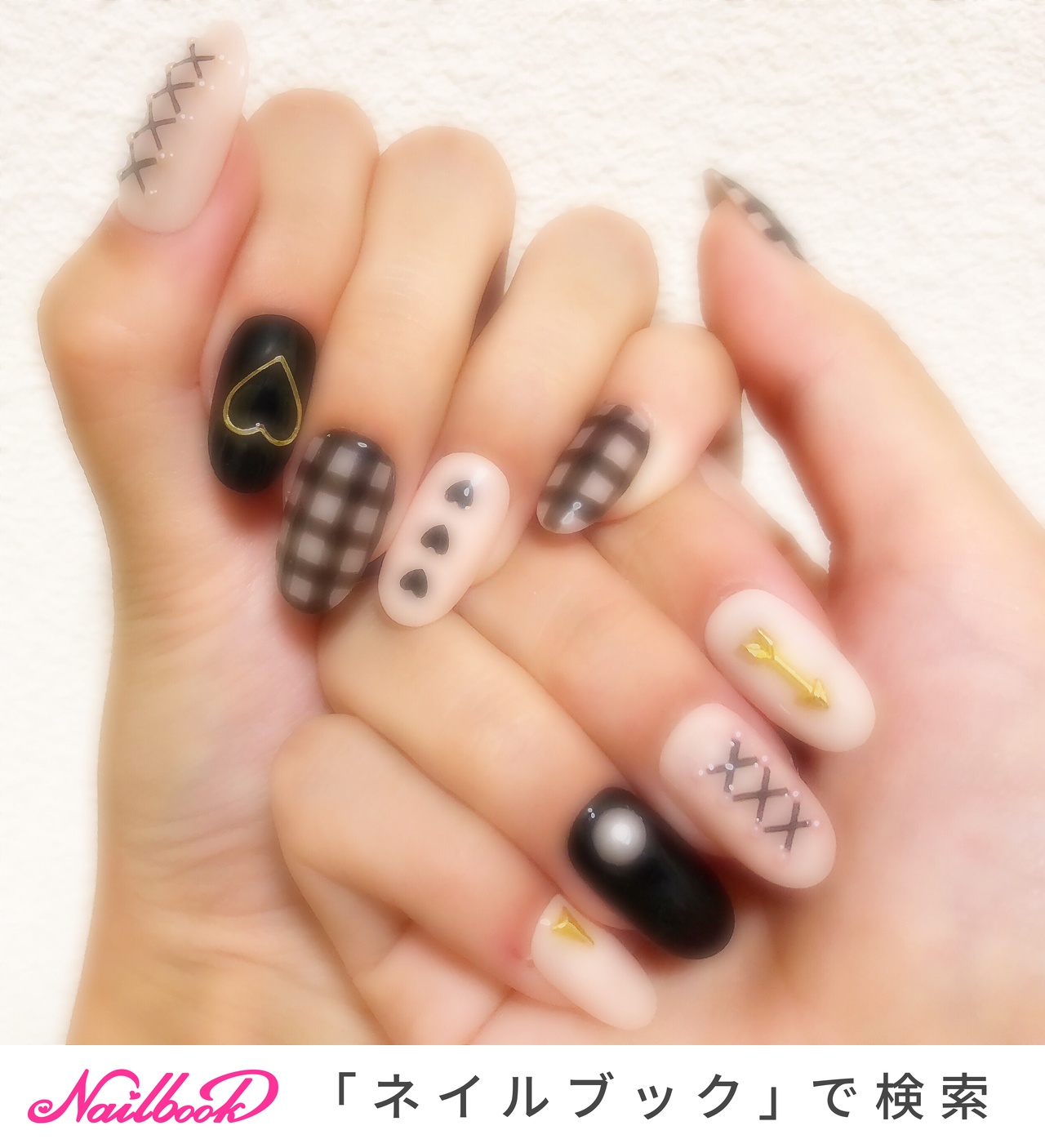 ブラック ピンク リボン 量産型 ネイルチップ Churl Nail