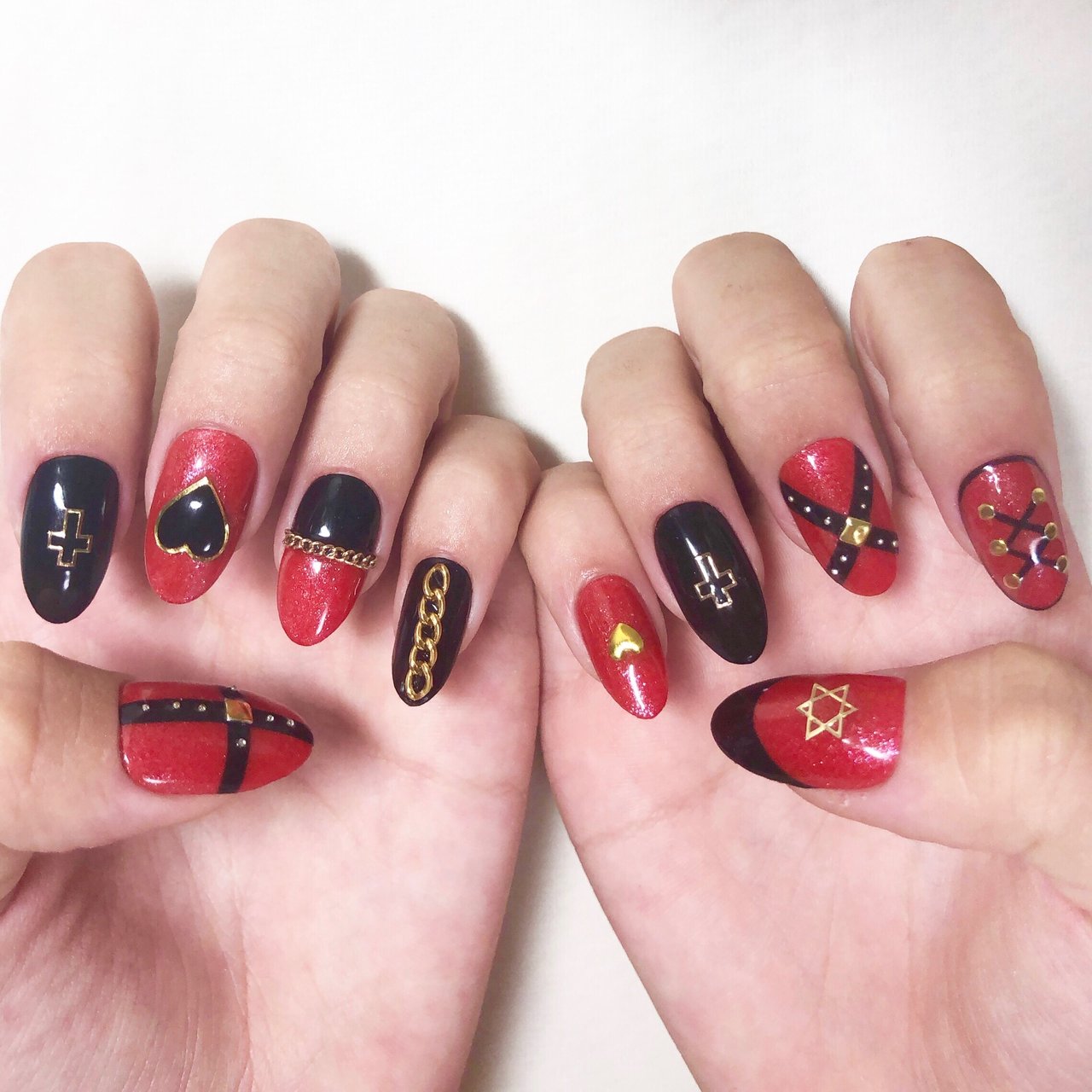 量産型 ネイルチップ 赤 黒 ハンドメイドマーケット Minne