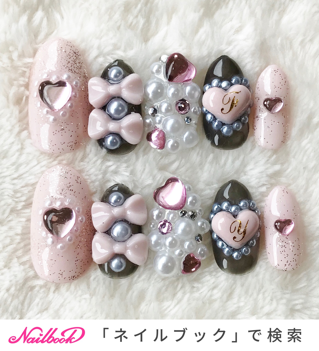 ネイルチップ 量産型 黒 ハート アルファベット
