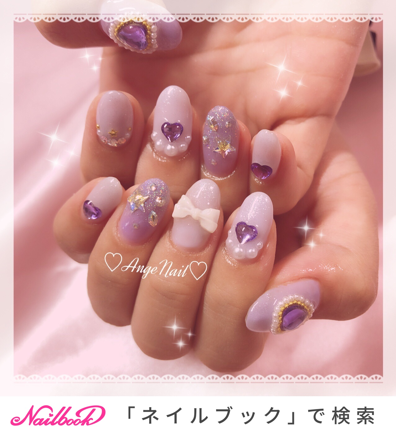 ラメ ハート パープル Angenailのネイルデザイン No 4753743