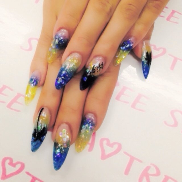 くらげ ネイル Pa Twitter 塗りかけニュアンスネイル 青 黄の