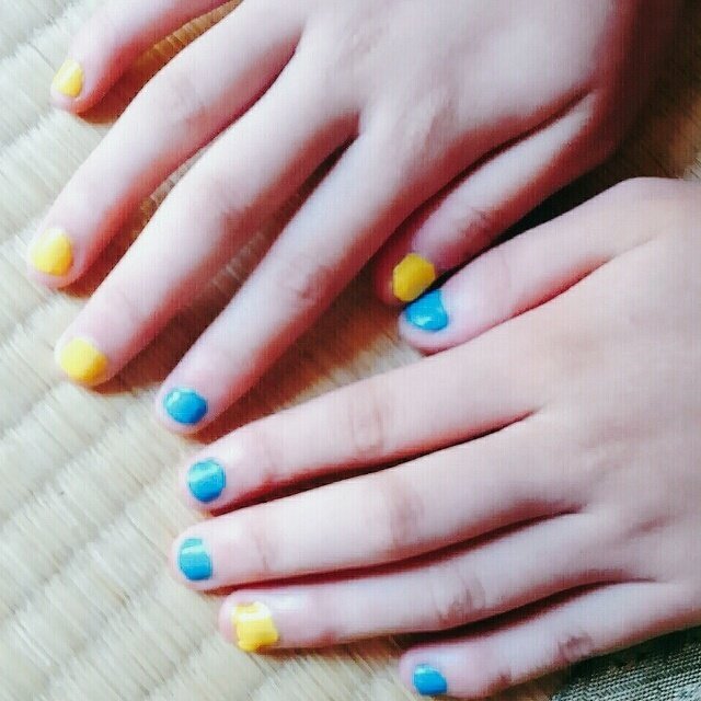 ピンクグラデーションネイル 青 黄色ワンカラーネイル 子育て