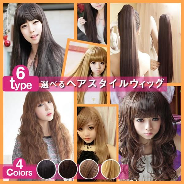 ウィッグ ヘアスタイル 6種類 3色 ロング ロングヘアー ボブ カール